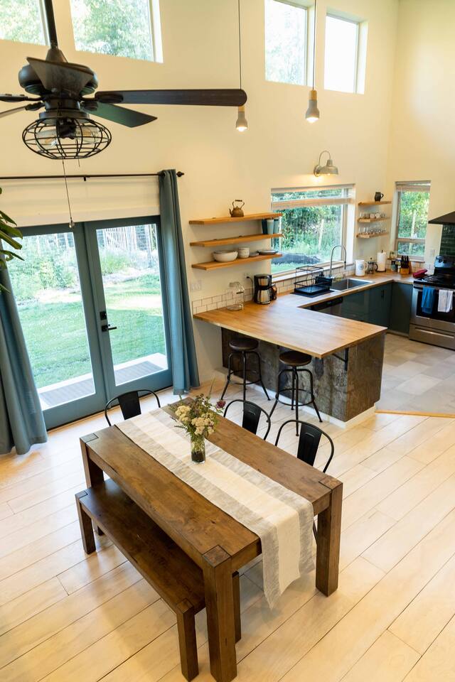 Enjoy the central location in the heart of the Methow Valley from this fully equipped, family-friendly, trailside home! Truly a basecamp for adventures to North Cascades National Park, local nordic and back country skiing, hiking and mountain biking. An easy 15 minute walk to downtown Winthrop across a beautiful suspension bridge, a 5 minute walk to the grocery store and dining options makes this a prime location for your getaway!